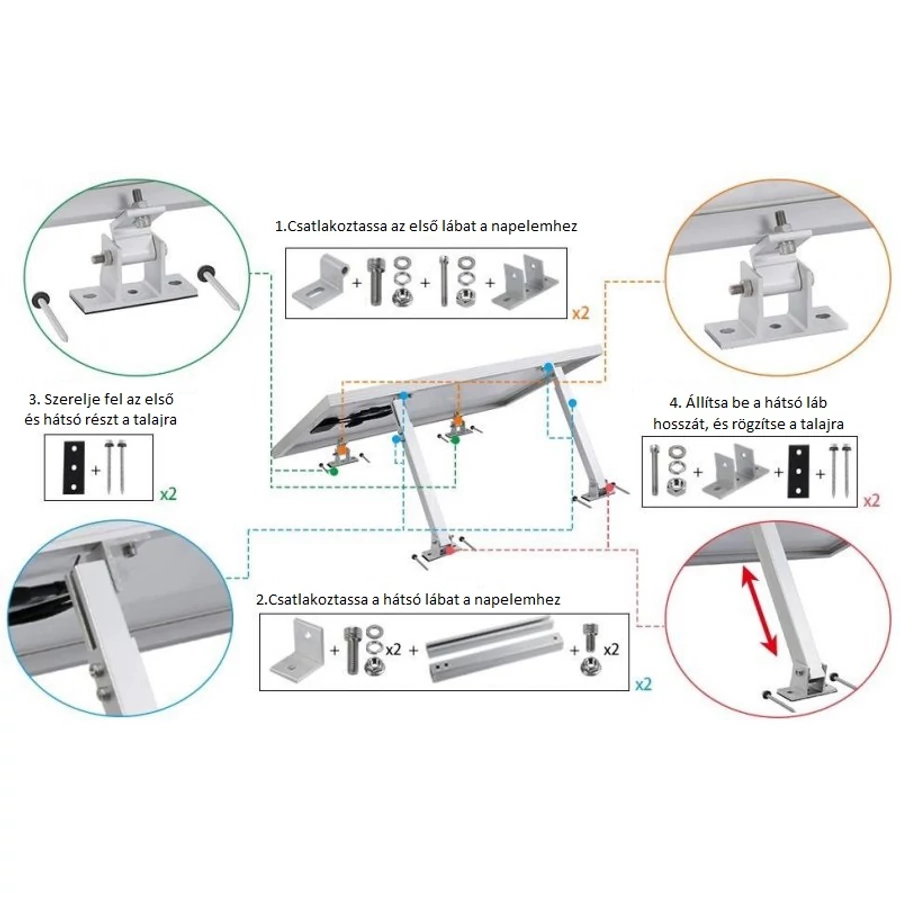 - A dőlésszög állítható, hogy a legoptimálisabb szögbe tudjuk állítani napelemeinket