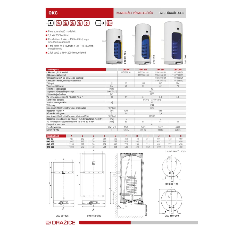 A Drazice vízmelegítők, melegvíz-tárolók a legmagasabb minőségű anyagokból készülnek, modern külső és kedvező ár jellemzi. A Drazice OKC 160 literes melegvíz-tároló 4-5 fő meleg víz igényét elégíti ki. Egyidejűleg több vízvételi hely, továbbá zuhanyzós csaptelepek ellátására is megfelelő. Az általa tárolt meleg víz tisztálkodási és étkezési célra egyaránt alkalmas.