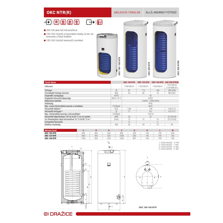A Drazice OKC 200 NTRR álló, 2 hőcserélős indirekt tároló akár 13 perc alatt felmelegíti a használati meleg vízet. A Drazice vízmelegítők, melegvíz-tárolók a legmagasabb minőségű anyagokból készülnek, modern külső és kedvező ár jellemzi. A tároló alkalmas például egy gázkazán, vagy egy szolár rendszer által biztosított meleg víz fogadására és hatékony tárolására.