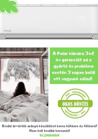 A fűtésre optimalizált Polar klíma berendezések biztosítják a biztonságos hűtést és fűtést az egész évre. Ezeknél a klímáknál a kültéri egység úgy lett kialakítva, hogy bírja a strapát télen is. Ezek általában elektromos fűtéssel vannak ellátva, így automatikusan leolvasztja a kondenzvizet. Ez a fejlesztés elmaradhatatlan, ugyanis ha a rá fagyott víz nem képes kifolyni az egységből, a gép nem tud zavartalanul és gazdaságosan működni, ez pedig senkinek sem megfelelő. Mivel ezek a berendezések környezetbarátok és gazdaságosak, az áramszolgáltatók honorálásként kedvezményeket adnak a klímával, hőszivattyúval, való fűtés használatára. Mit nyújtanak még a Polar klímák? Beépített WIFI, Energiahatékonyság, Inverteres technológia, Elalvás üzemmód - A ventilátor sebességet a nyugodt, alváshoz igazítja, Csendes működés - csökkenti a zajt bel és kültéren egyaránt, Páramentesítés - csökkenti a levegő páratartalmát.