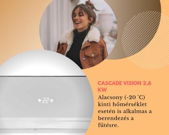 A Cascade légkondicionáló berendezések mindazokat az előnyöket nyújtják, amiket a legrangosabb klímamárkák kínálnak: legújabb technológia, wifi vezérlés, kiváló minőségű, tartós alkatrészek, elvárásokon túlmutató energiatakarékosság, alacsony zajszint, egészséges, biztonságos levegőminőség. A kiváló ár-érték arányú berendezéseket azoknak ajánljuk, akik ragaszkodnak a magas minőséghez, ám nem kívánják megfizetni a világmárkák által kért felárat. A berendezések környezetbarát R32 hűtőközeggel üzemelnek, és a világ vezető klímagyártói által is használt energiatakarékos kompresszorokkal készülnek. A szakértők és szerelők, ill. felhasználók visszajelzéseiből kitűnik, hogy mind a klímák minősége, mind pedig a szerelhetősége kiemelkedő színvonalú.
