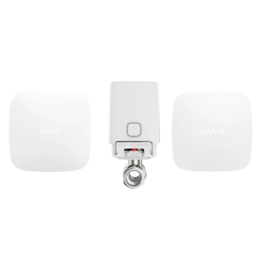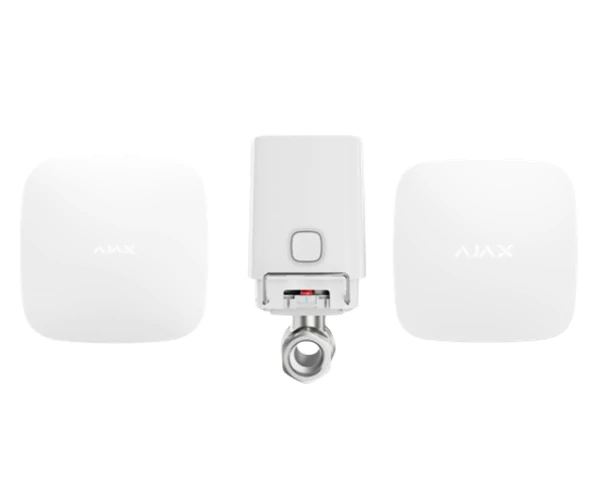 Az Ajax WaterStop Kit 3/4" egy vezeték nélküli riasztókészlet, amely egy távvezérlésű intelligens vízelzáró szelepet, egy vízszivárgás érzékelőt és a rendszer vezérlésére szolgáló központot tartalmaz. Az Ajax WaterStop 5 másodpercen belül automatikuson elzárja a vizet, ha az Ajax LeaksProtect vagy egy harmadik féltől származó vízszivárgás érzékelő működésbe lép.