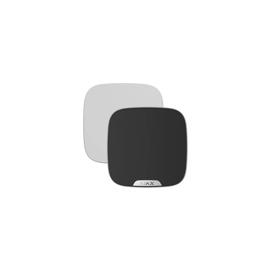 Előlap az Ajax DoubleDeck vezeték nélküli kültéri hangjelzőre, egyedi logózással. A kültéri sziréna előlapjára nyomtathatják logójukat és elérhetőségeiket.