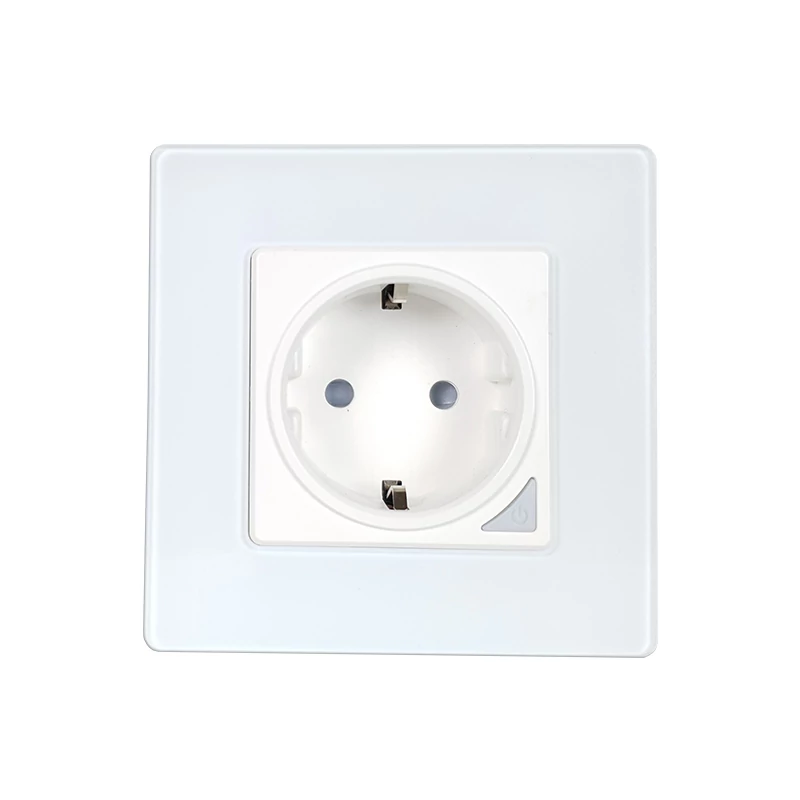 Interneten keresztül mobiltelefonról távolról vezérelhető, időzíthető, 16A max. teljesítményű okos konnektor aljzat, elegáns fehér üveg előlappal, rajta fizikai ki/be kapcsoló gombbal. A Sonoff eszközökhöz hasonlóan ez is az eWeLink app-al vezérelhető távolról, időzíthető, automatizálható.